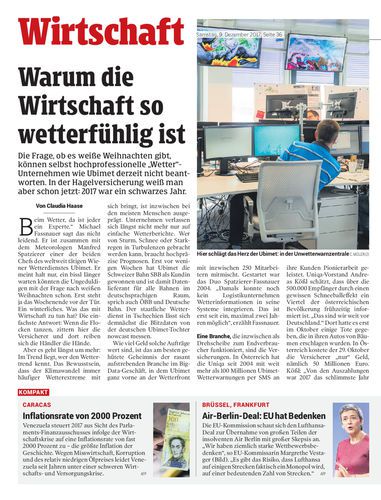 Die Frage, ob es weiße Weihnachten gibt, können selbst hochprofessionelle „Wetter“-Unternehmen wie Ubimet derzeit nicht beantworten. In der Hagelversicherung weiß man aber schon jetzt: 2017 war ein schwarzes Jahr.
