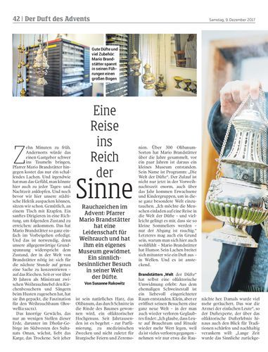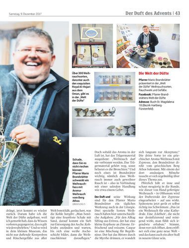 Rauchzeichen im Advent: Pfarrer Mario Brandstätter hat eine Leidenschaft für Weihrauch und hat ihm ein eigenes Museum gewidmet. Ein sinnlich- besinnlicher Besuch in seiner Welt der Düfte. Von Susanne Rakowitz