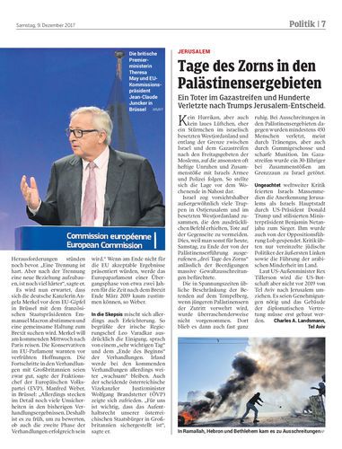 Ein Toter im Gazastreifen und Hunderte Verletzte nach Trumps Jerusalem-Entscheid.