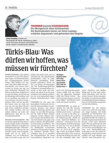 THURNHER kontr@ FLEISCHHACKER Ein Wortgefecht ohne Sichtkontakt. Die Kontrahenten sitzen vor ihren Laptops, schärfen Argumente und gehorchen drei Regeln: