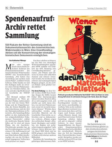 550 Plakate der Rehse-Sammlung sind im Dokumentationsarchiv des österreichischen Widerstandes in Wien. Eine Crowdfunding-Aktion soll die Konservierung der einmaligen historischen Dokumente ermöglichen.