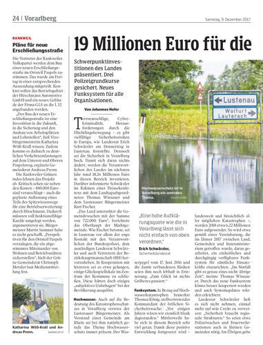 Schwerpunktinvestitionen des Landes präsentiert. Drei Polizeigrundkurse gesichert. Neues Funksystem für alle Organisationen.
