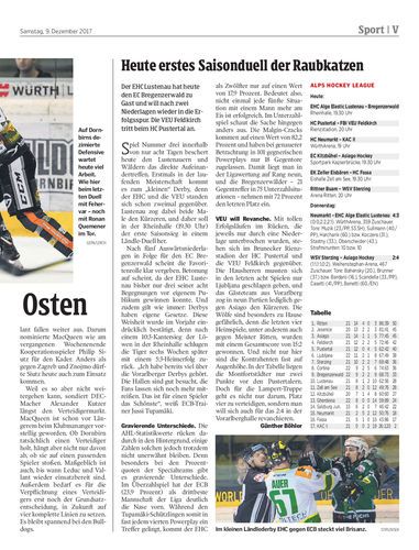 Der EHC Lustenau hat heute den EC Bregenzerwald zu Gast und will nach zwei Niederlagen wieder in die Erfolgsspur. Die VEU Feldkirch tritt beim HC Pustertal an.