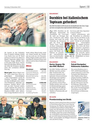 Der RHC Dornbirn trifft heute im Achtelfinale des Cers-Cups auf den europäischen Spitzenklub ASD Breganze.
