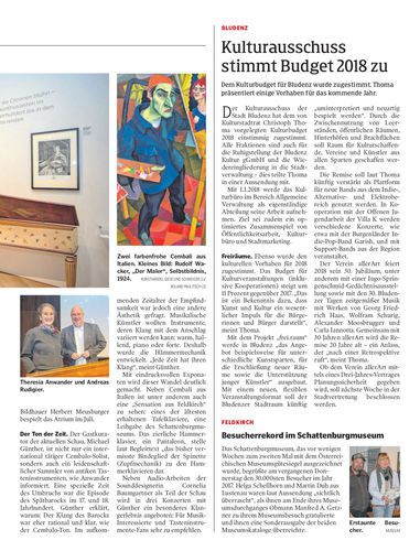 Dem Kulturbudget für Bludenz wurde zugestimmt. Thoma präsentiert einige Vorhaben für das kommende Jahr.