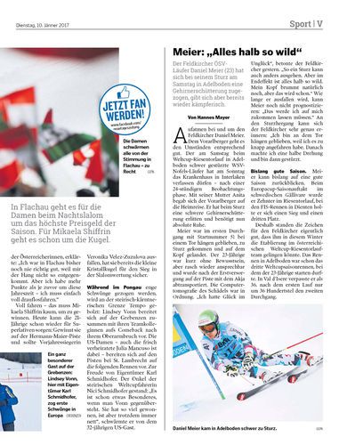 Der Feldkircher ÖSV-Läufer Daniel Meier (23) hat sich bei seinem Sturz am Samstag in Adelboden eine Gehirnerschütterung zugezogen, gibt sich aber bereits wieder kämpferisch.