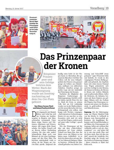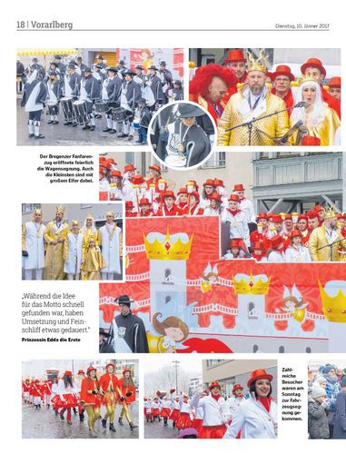 Bregenzer Prinzenpaar und sein Gefolge trotzten dem Wetter. Nach der Wagensegnung wurde am Sonntagnachmittag auf dem Ore-Ore-Platz gefeiert.