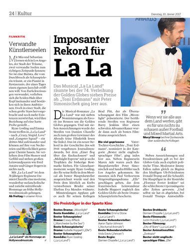Das Musical „La La Land“ räumte bei der 74. Verleihung der Golden Globes sieben Preise ab. „Toni Erdmann“ mit Peter Simonischek ging leer aus.