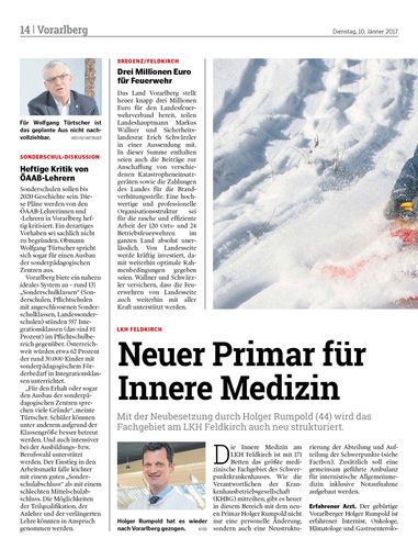 Mit der Neubesetzung durch Holger Rumpold (44) wird das Fachgebiet am LKH Feldkirch auch neu strukturiert.