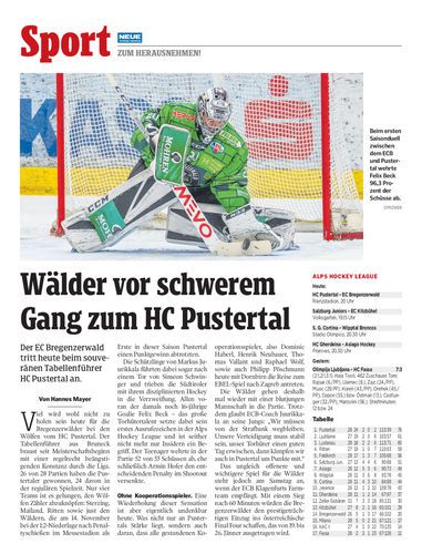Der EC Bregenzerwald tritt heute beim souveränen Tabellenführer HC Pustertal an.