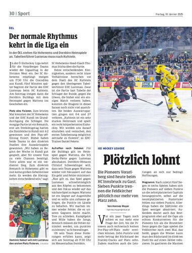 In der ÖEL stehen für Hohenems und Dornbirn Heimspiele an, Tabellenführer Lustenau muss nach Kufstein.