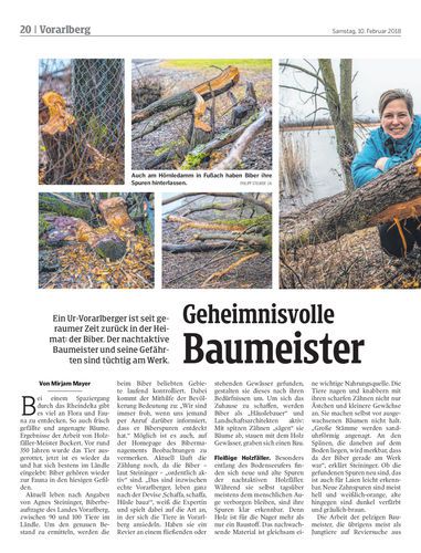 Ein Ur-Vorarlberger ist seit geraumer Zeit zurück in der Heimat: der Biber. Der nachtaktive Baumeister und seine Gefährten sind tüchtig am Werk.