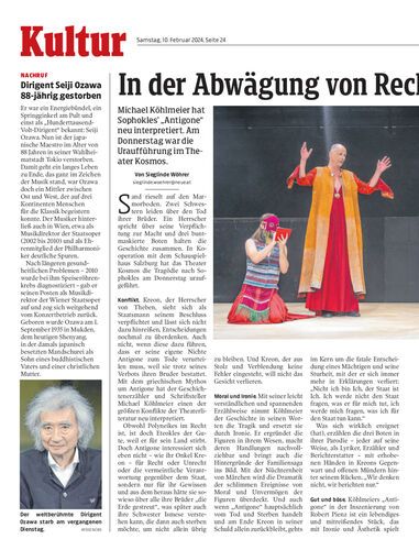 Michael Köhlmeier hat Sophokles’ „Antigone“ neu interpretiert. Am Donnerstag war die Uraufführung im Theater Kosmos.