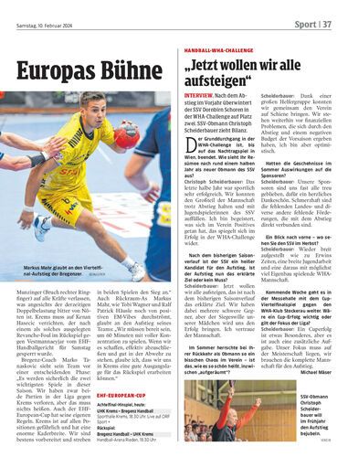 Im Hinspiel des EHF-European-Cups trifft Bregenz HB heute (18.30) auswärts auf den UHK Krems. Gute Ausgangslage für das Rückspiel in einer Woche ist erklärtes Ziel.