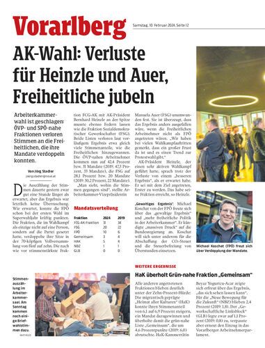 AK-Wahl: Verluste für Heinzle und Auer, Freiheitliche jubeln