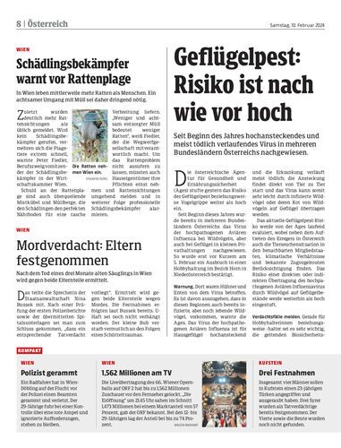 Seit Beginn des Jahres hochansteckendes und meist tödlich verlaufendes Virus in mehreren Bundesländern Österreichs nachgewiesen.
