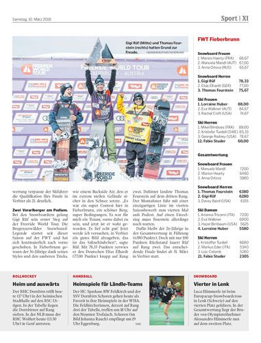 Lorraine Huber bei den Skifahrerinnen und Gigi Rüf bei den Snowboardern siegten bei der Freeride World Tour jeweils in ihrer Kategorie und qualifizierten sich für das Finale in Verbier.