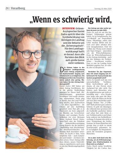 Interview. Grünen-Asylsprecher Daniel Zadra spricht über die Symbolwirkung von Anträgen im Landtag und die Debatte um die „Sicherungshaft“. Für den Landtagswahlkampf hofft er darauf, dass alle Parteien den Blick aufs große Ganze nicht verlieren.