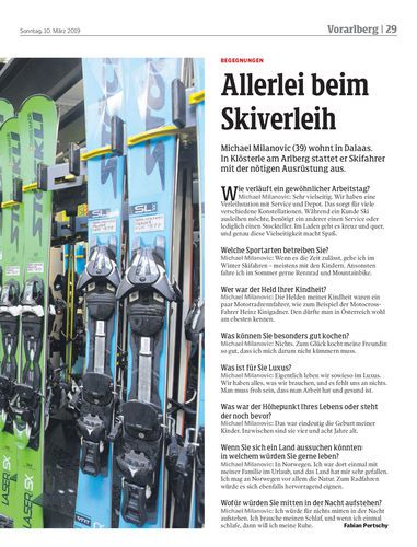 In Klösterle am Arlberg stattet er Skifahrer mit der nötigen Ausrüstung aus.