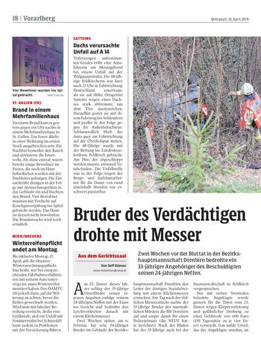 Zwei Wochen vor der Bluttat in der Bezirkshauptmannschaft Dornbirn bedrohte ein 33-jähriger Angehöriger des Beschuldigten seinen 24-jährigen Neffen.