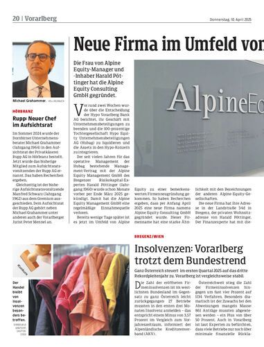 Die Frau von Alpine Equity-Manager und -Inhaber Harald Pöttinger hat die Alpine Equity Consulting GmbH gegründet.