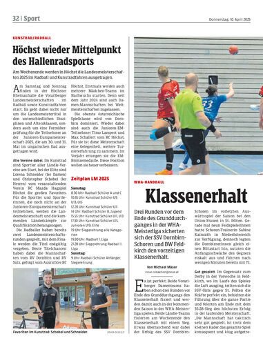 Am Wochenende werden in Höchst die Landesmeisterschaften 2025 im Radball und Kunstradfahren ausgetragen.
