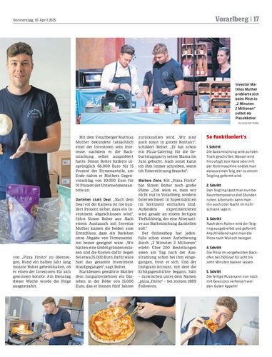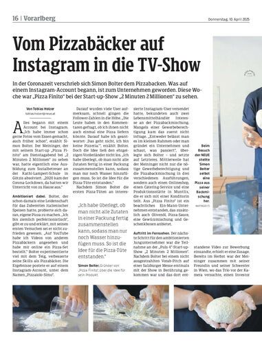 In der Coronazeit verschrieb sich Simon Bolter dem Pizzabacken. Was auf einem Instagram-Account begann, ist zum Unternehmen geworden. Diese Woche war „Pizza Finito“ bei der Start-up-Show „2 Minuten 2 Millionen“ zu sehen.