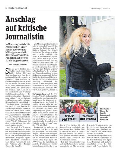 In Montenegro steht die Pressefreiheit unter Dauerfeuer: Die Ent- hüllungsjournalistin Olivera Lakić wurde in Podgorica auf offener Straße angeschossen.