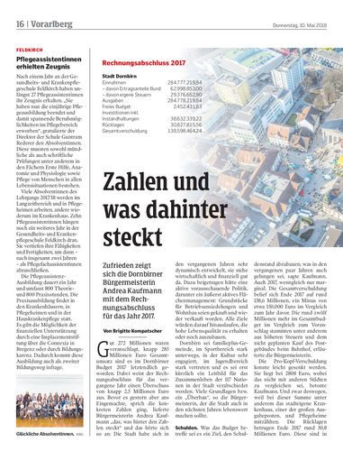 Zufrieden zeigt sich die Dornbirner Bürgermeisterin Andrea Kaufmann mit dem Rechnungsabschluss für das Jahr 2017.
