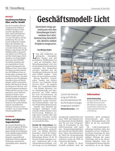 Zumtobel steigt gemeinsam mit den Vorarlberger Kraftwerken ins Licht-Contracting Geschäft ein. Bereits sieben Projekte umgesetzt.