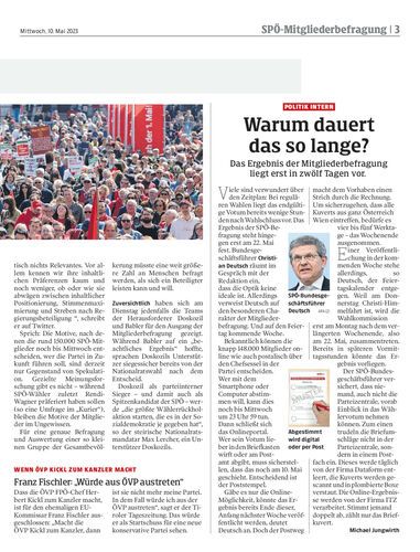 Um Mitternacht endet die SPÖ-Mitgliederbefragung. Ob die Mitglieder Pamela Rendi-Wagner, Hans Peter Doskozil oder Andreas Babler gewählt haben, ist noch nicht absehbar.