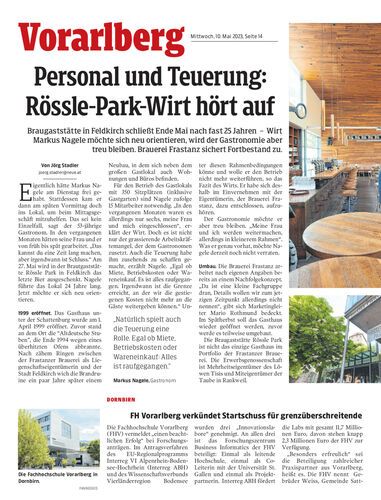 Braugaststätte in Feldkirch schließt Ende Mai nach fast 25 Jahren – Wirt Markus Nagele möchte sich neu orientieren, wird der Gastronomie aber treu bleiben. Brauerei Frastanz sichert Fortbestand zu.