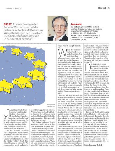 ESSAY. In einer bewegenden Rede in Westminster rief der britische Autor Ian McEwan zum Widerstand gegen den Brexit auf. Die Übersetzung besorgte die „Neue Zürcher Zeitung“.