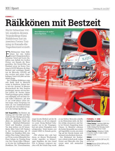 Nicht Sebastian Vettel, sondern dessen Teamkollege Kimi Räikkönen hat im zweiten Freien Training in Kanada die Tagesbestzeit erzielt.