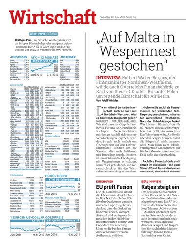 Norbert Walter-Borjans, der Finanzminister Nordrhein-Westfalens, würde auch Österreichs Finanzbehörde zu Kauf von Steuer-CD raten. Brisanter Poker um rettende Bürgschaft für Air Berlin. Von Adolf Winkler