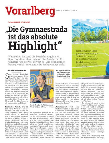 Wenn einer im Land die Bezeichnung „Mister Sport“ verdient, dann ist es er: der Dornbirner Erwin Reis (67), der viel bewegt hat und noch immer bewegt – nicht zuletzt mit der Weltgymnaestrada.