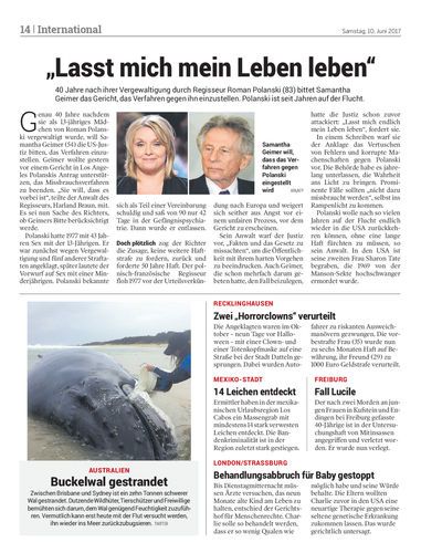 40 Jahre nach ihrer Vergewaltigung durch Regisseur Roman Polanski (83) bittet Samantha Geimer das Gericht, das Verfahren gegen ihn einzustellen. Polanski ist seit Jahren auf der Flucht.
