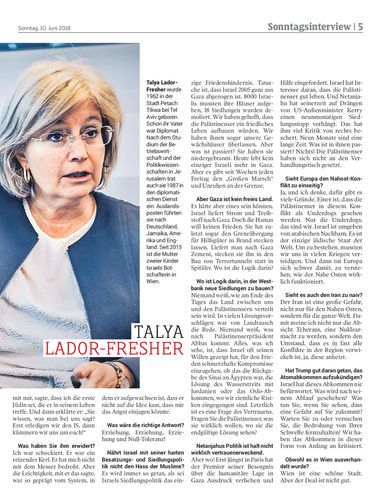 Interview. Heute beginnt der Besuch von Kanzler Sebastian Kurz in Israel. Hier spricht Talya Lador-Fresher, Israels Botschafterin in Wien, über Türkis-Blau, rechten und muslimischen Antisemitismus und über Europas getrübten Blick auf den Nahen Osten. Von Stefan Winkler und Michael Jungwirth