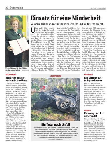 Veronika Haring wurde für Treue zu Sprache und Kulturerbe geehrt.