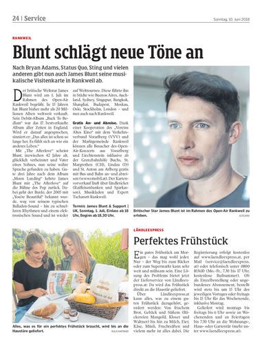 Britischer Star James Blunt ist im Rahmen des Open-Air Rankweil zu erleben. Altes Kino