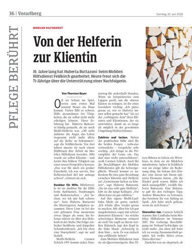 16 Jahre lang hat Huberta Buttazoni beim Mobilen Hilfsdienst Feldkirch gearbeitet. Heute freut sich die 71-Jährige über die Unterstützung einer Nachfolgerin.