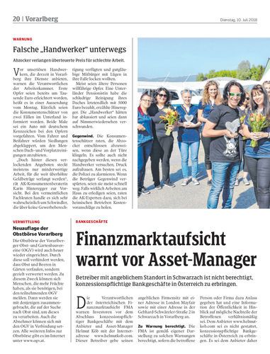Betreiber mit angeblichem Standort in Schwarzach ist nicht berechtigt, konzessionspflichtige Bankgeschäfte in Österreich zu erbringen.