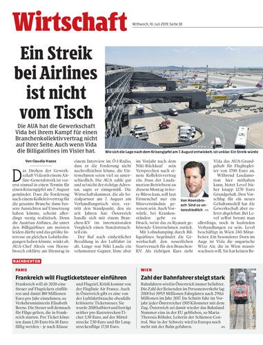 Die AUA hat die Gewerkschaft Vida bei ihrem Kampf für einen Branchenkollektivvertrag nicht auf ihrer Seite. Auch wenn Vida die Billigairlines im Visier hat.