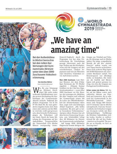Bei der Außenbühne in Höchst herrschte bei den tollen Darbietungen der Gymnaestrada-Akteure unter den über 2000 Zuschauern Volksfeststimmung.