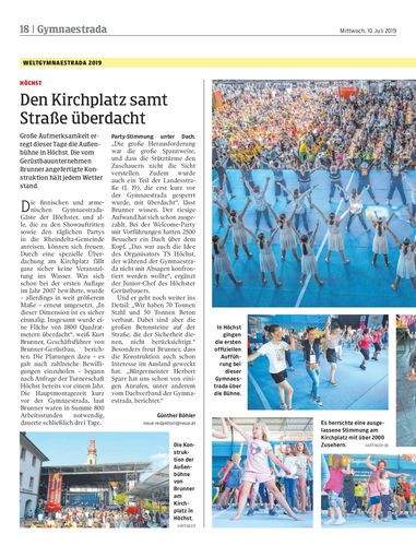 Große Aufmerksamkeit erregt dieser Tage die Außenbühne in Höchst. Die vom Gerüstbauunternehmen Brunner angefertigte Konstruktion hält jedem Wetter stand.