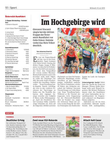Giovanni Visconti siegte bei der dritten Etappe der Österreich-Rundfahrt vor Colin Stüssi. Steimle verlor das Rote Trikot deutlich.