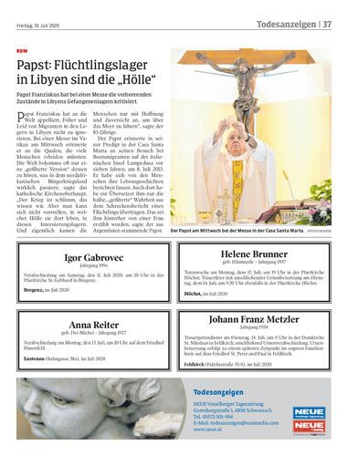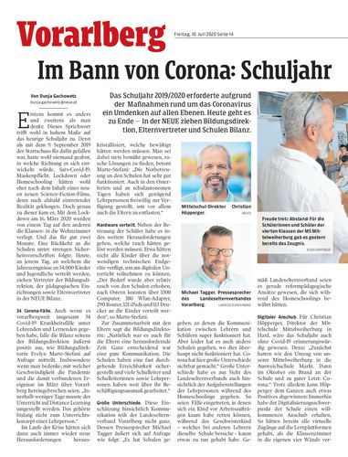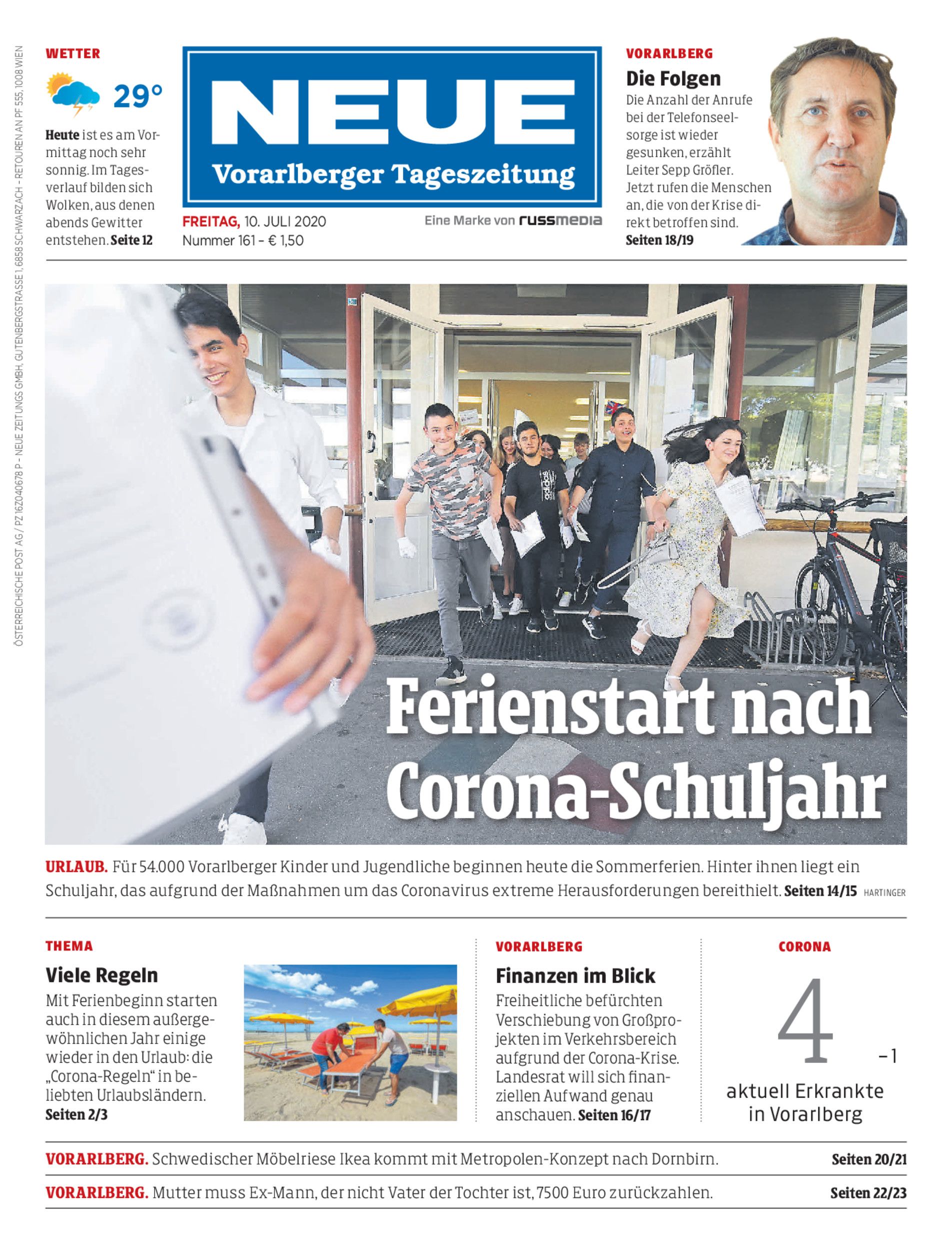 Urlaub. Für 54.000 Vorarlberger Kinder und Jugendliche beginnen heute die Sommerferien. Hinter ihnen liegt ein Schuljahr, das aufgrund der Maßnahmen um das Coronavirus extreme Herausforderungen bereithielt. Seiten 14/15 hartinger
