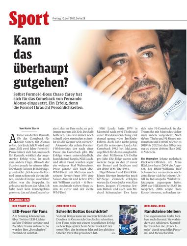 Selbst Formel-1-Boss Chase Carey hat sich für das Comeback von Fernando Alonso eingesetzt. Ein Erfolg, denn die Formel 1 braucht Persönlichkeiten.