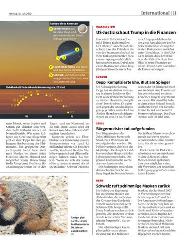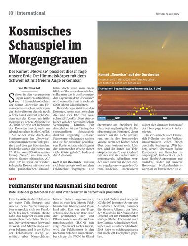 Der Komet „Neowise“ passiert dieser Tage unsere Erde. Der Himmelskörper mit dem Schweif ist mit freiem Auge erkennbar.
