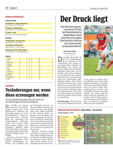 Die Altacher gastieren heute (17 Uhr) bei Rekordmeister Rapid Wien. Nach dem Auftritt gegen Tirol möchte Pastoor das Team weiter zusammenführen.